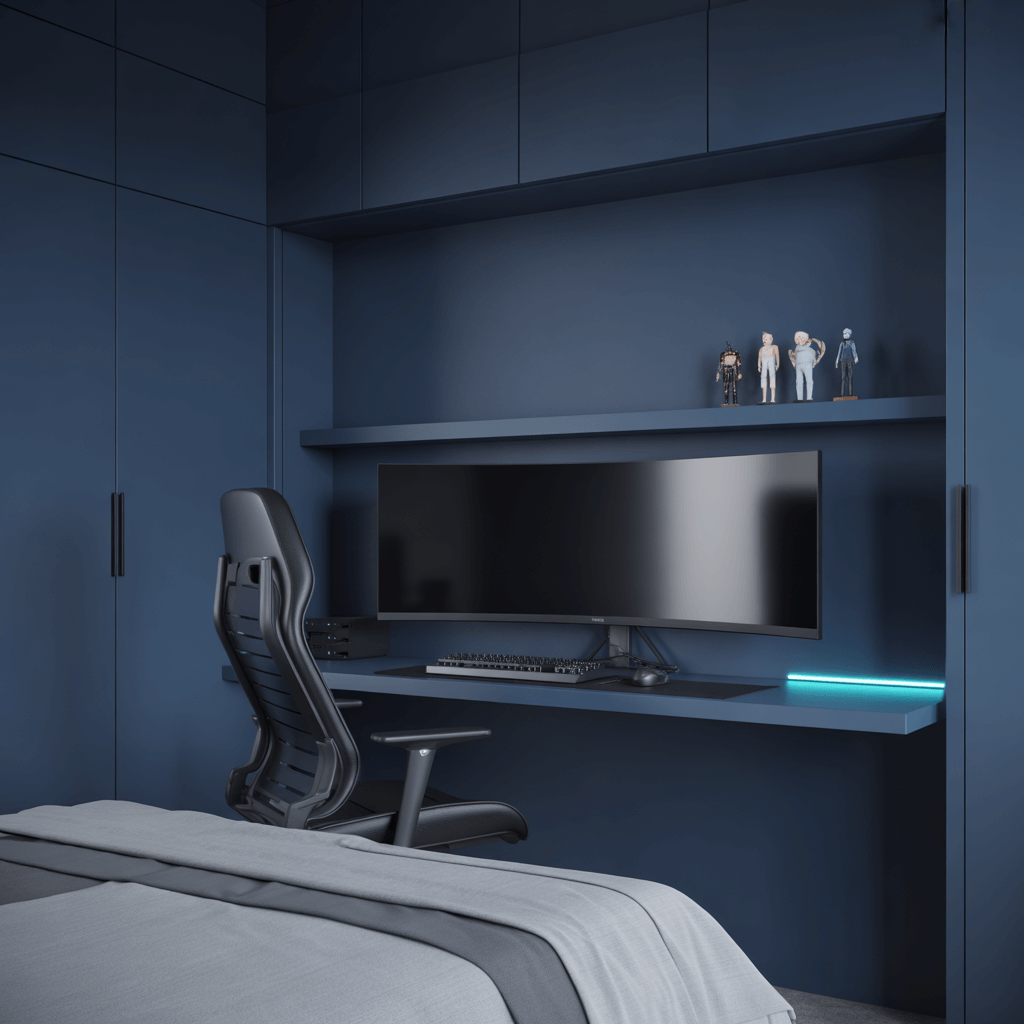 For the teen whose life revolves around a gaming PC or console, the bedroom is command central. The challenge? Preventing it from looking like a neon-lit tech store explosion. The minimalist gamer theme focuses on clean lines, smart organization, and integrating technology seamlessly.