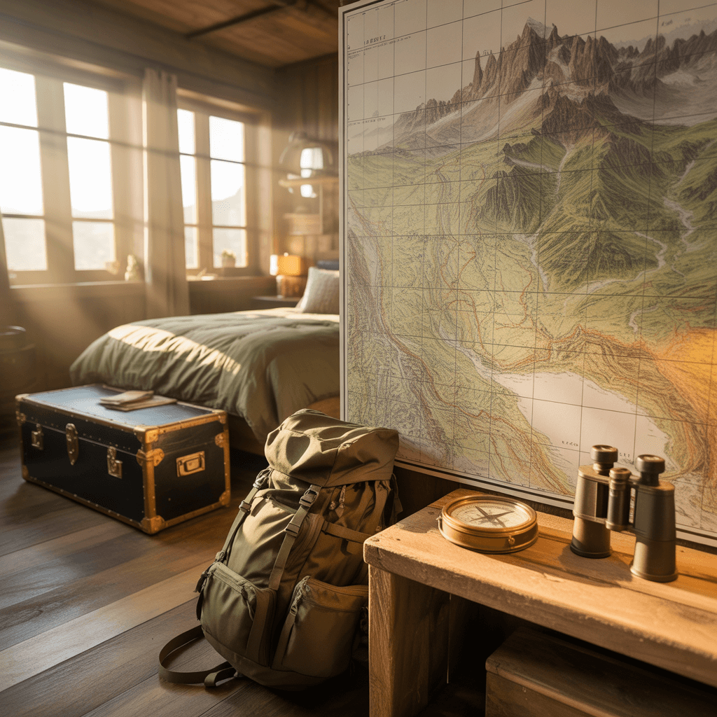 Functional Decor: Use gear as decor. Hang a backpack on a hook, coil a climbing rope in a basket, or display a cool compass. A wall-mounted LED “campfire” light can add a fun, whimsical touch for ambiance. It’s all about creating a space that feels ready for the next expedition, even if it’s just to the kitchen.