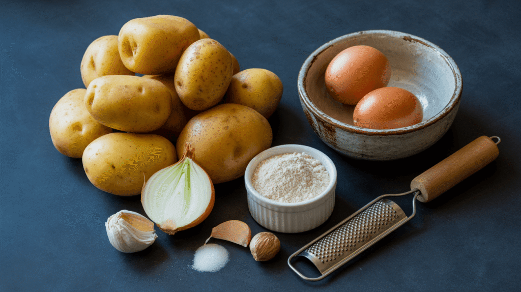 2 pounds of Russet Potatoes: This is non-negotiable. Russets (also called baking potatoes) are high in starch, which is what gives the pancakes their signature cohesive texture and crispy exterior. Waxy potatoes like red or Yukon Gold will not work the same way—they’ll be gummy and sad. Let’s just trust the science on this one.